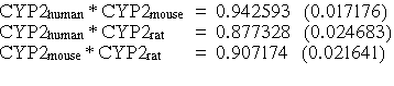 Mutational spectra have been revealed for the CYP2 family in three species, namely man, rat, mouse. Regression analysis showed that although the relationship among the mutational spectra of these proteins is rather close, there are species specific differences.
