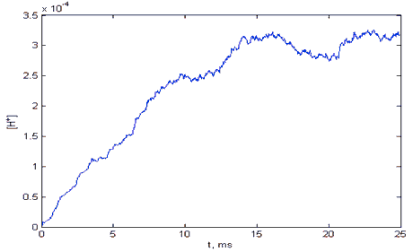 Концентрация протонов в люмене вдоль плоскости мембраны.
